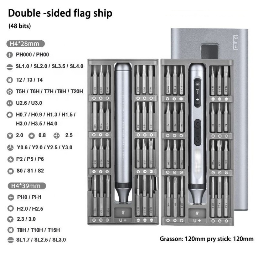 For at vise dine sande gør-det-selv-evner har du brug for det rigtige udstyr – og dette er det! Fremstillet af holdbar aluminiumlegering, indeholder 50-i-1 sættet 48 præcisionsmagnetiske bits til alle former for reparationer, fra smartphones til hjemmeelektronik. Det aftagelige design gør det let at skifte bits, og det kompakte etui holder styr på alt, så du slipper for at lede efter manglende dele.