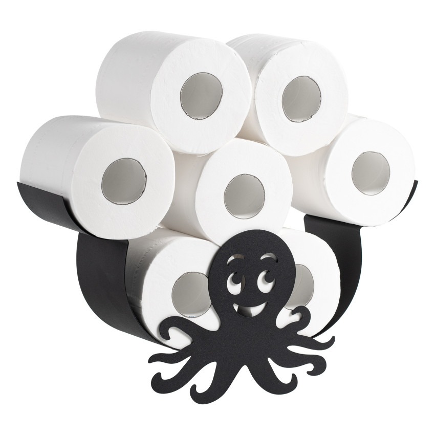 - Praktisk Opbevaring: Med sit fritstående design kan holderen rumme op til 5 ekstra ruller, så du aldrig står i en nødsituation uden papir!
