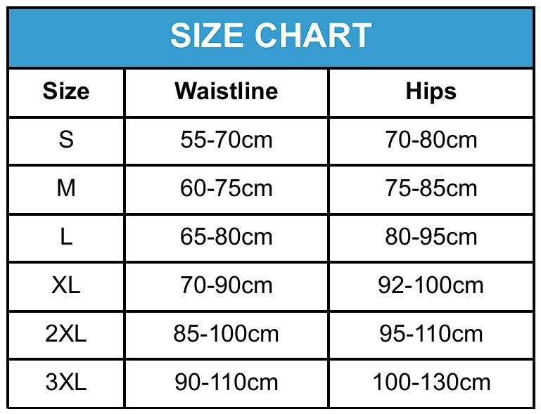 - Flere størrelser: Fås i S (45–55 kg), M (50–65 kg), L (60–75 kg), XL (70–85 kg), 2XL (75–90 kg) og 3XL (80–100 kg).