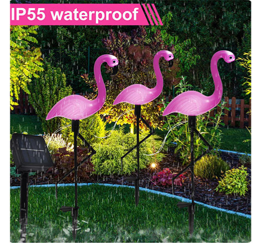 Skab stemning med vores sæt af 3 Flamingo Solcellelamper – vandtætte LED-havelamper, der bringer farver og charme til din udendørs indretning!