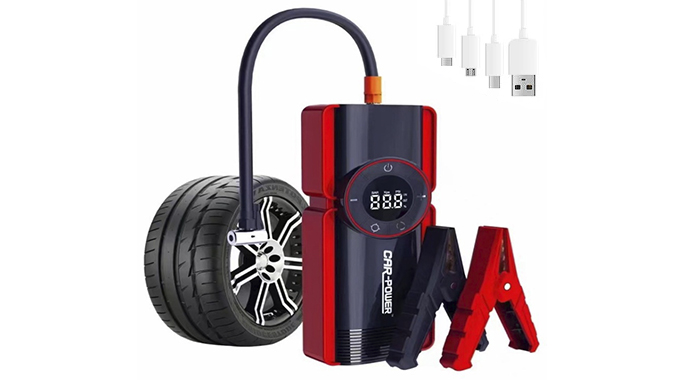 ✨ Med denne Power Bank Jump Starter er du altid klar – uanset om du har brug for at starte bilen, oplade dine enheder eller pumpe dækket. En uundværlig makker til bilister, campister og eventyrere!