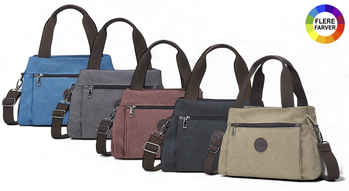 1 stk. dametaske i kanvas med stor kapacitet og flere rum (crossbody)