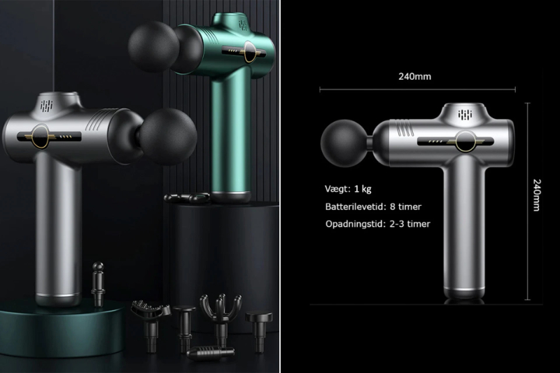 Sig farvel til ømme muskler med en massagepistol, der effektivt afspænder musklerne og reducerer ømhed – inklusiv 8 smarte massagehoveder.