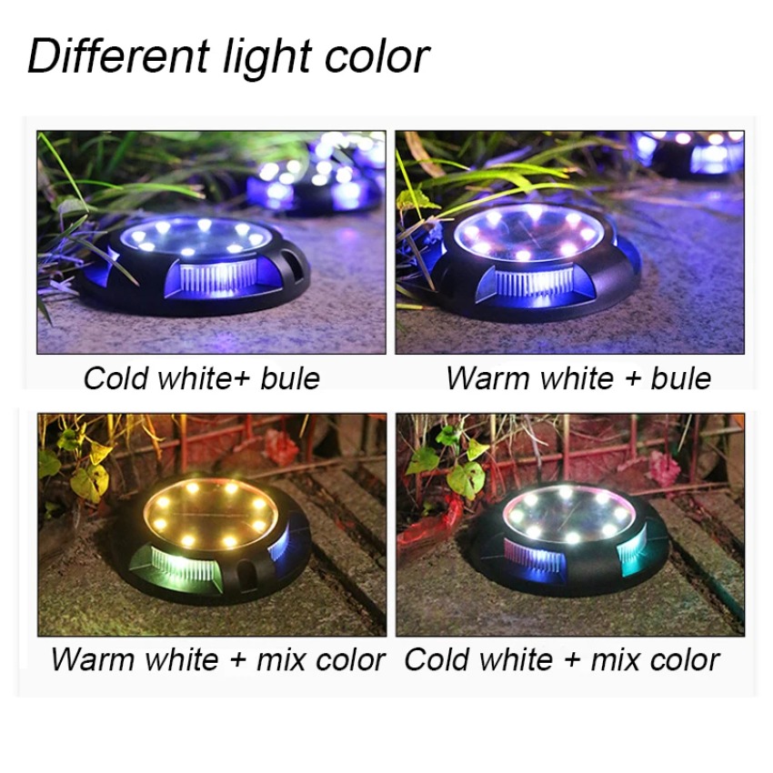 1 sæt x udendørs solcelledrevet nedgravet LED-lys med sidelys til græsplæne og have