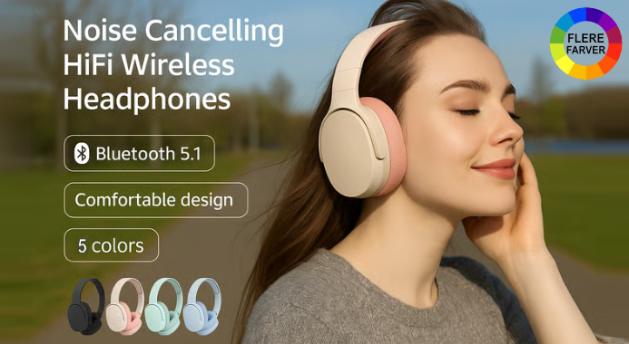 Vores trådløse HiFi-stereolyd-hovedtelefoner tilbyder overlegen lydkvalitet med high-definition stereolyd og en avanceret Bluetooth 5.1-chip, der leverer krystalklar diskant og dyb bas. Dette sikrer en problemfri musikoplevelse, uanset lydstyrken.