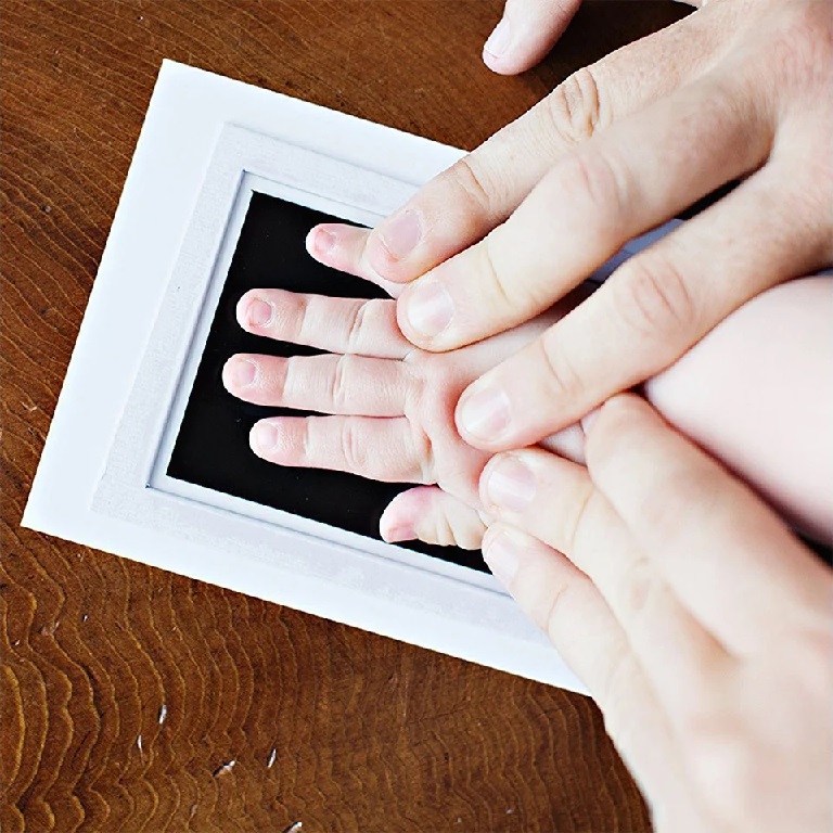 Bevar dyrebare minder med dit barns hånd- og fodaftryk med dette brugervenlige sæt. Der er ingen direkte kontakt med blækket, så barnet behøver ikke røre farven. Placer farvearket med blækket mod et af glansarkene og tryk forsigtigt barnets hånd eller fod ned for at lave et smukt og varigt aftryk.