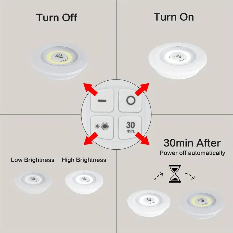 Opgrader din hjemmebelysning med smarte LED-lys, der giver effektivt og behageligt lys i skabe, garderober, køkkener eller andre mørke områder. Med den medfølgende fjernbetjening kan du nemt justere lysstyrken (50 % eller 100 %) samt benytte 30-minutters timerfunktionen.