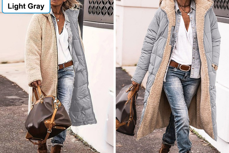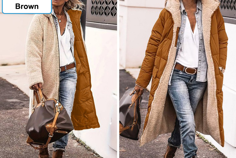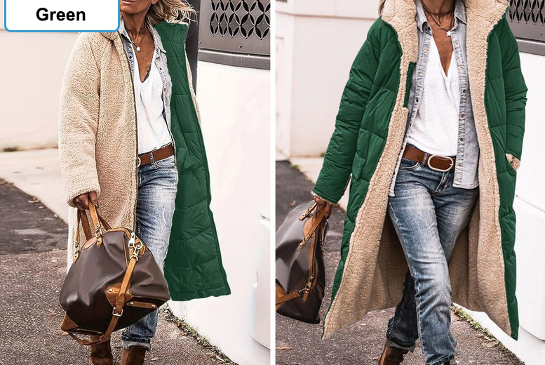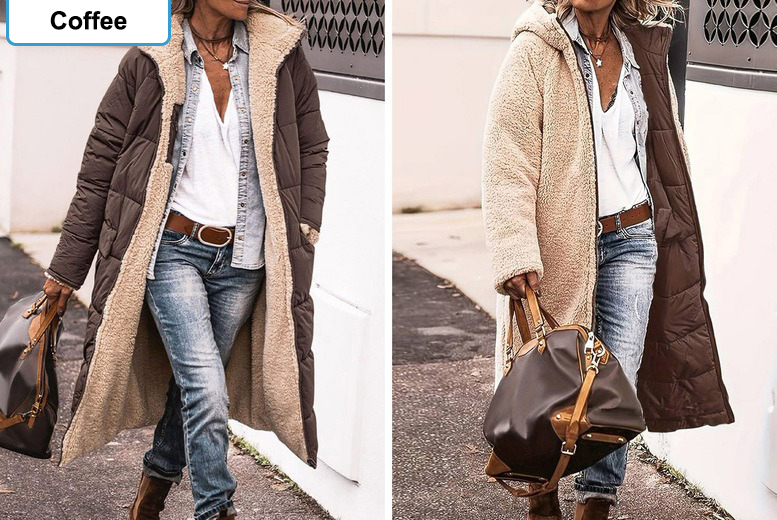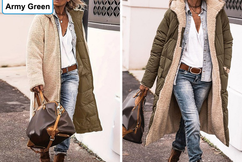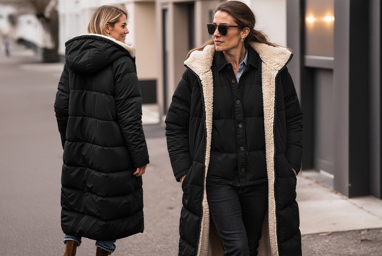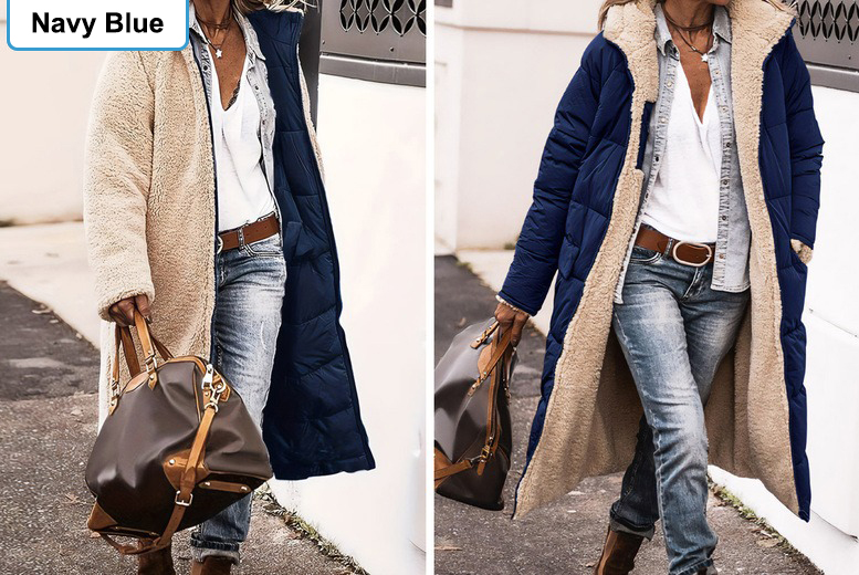 Bekæmp kulden med denne lange, vendbare parka, foret med ultrablød teddyfleece og afsluttet med et quiltet yderlag. Skift stil med to looks i én jakke.