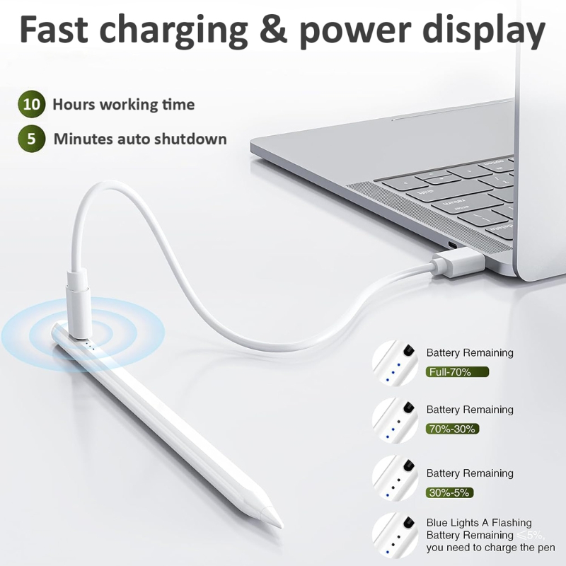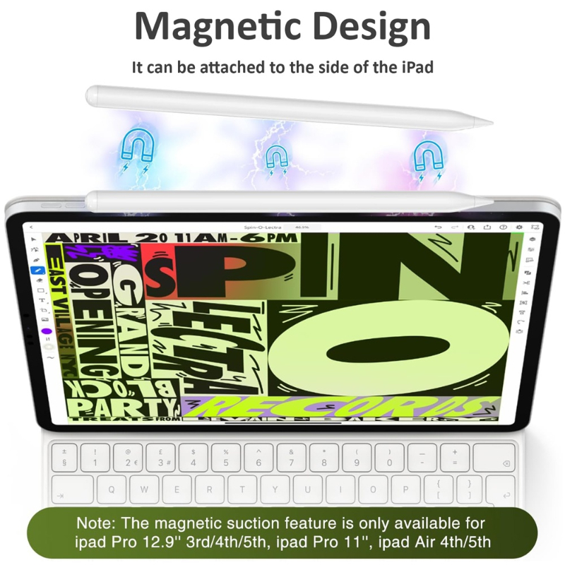 Magnetisk og genopladelig stylus-pen til nyere iPads. Brug din Apple-tablet som notesblok eller tegneflade. Den har smarte funktioner som hældningsgenkendelse og håndafvisning.